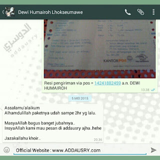 3. Sejak tanggal 8 Maret 2011 Alhamdulillah kami bisa membangun website dengan untuk layanan busana muslim online dengan domain berakhiran .com yaitu www.addausry.com dengan artian domain ini berbayar sebagai wujud kesungguhan kami dalam memberikan kenyamanan dan menepis keraguan.
